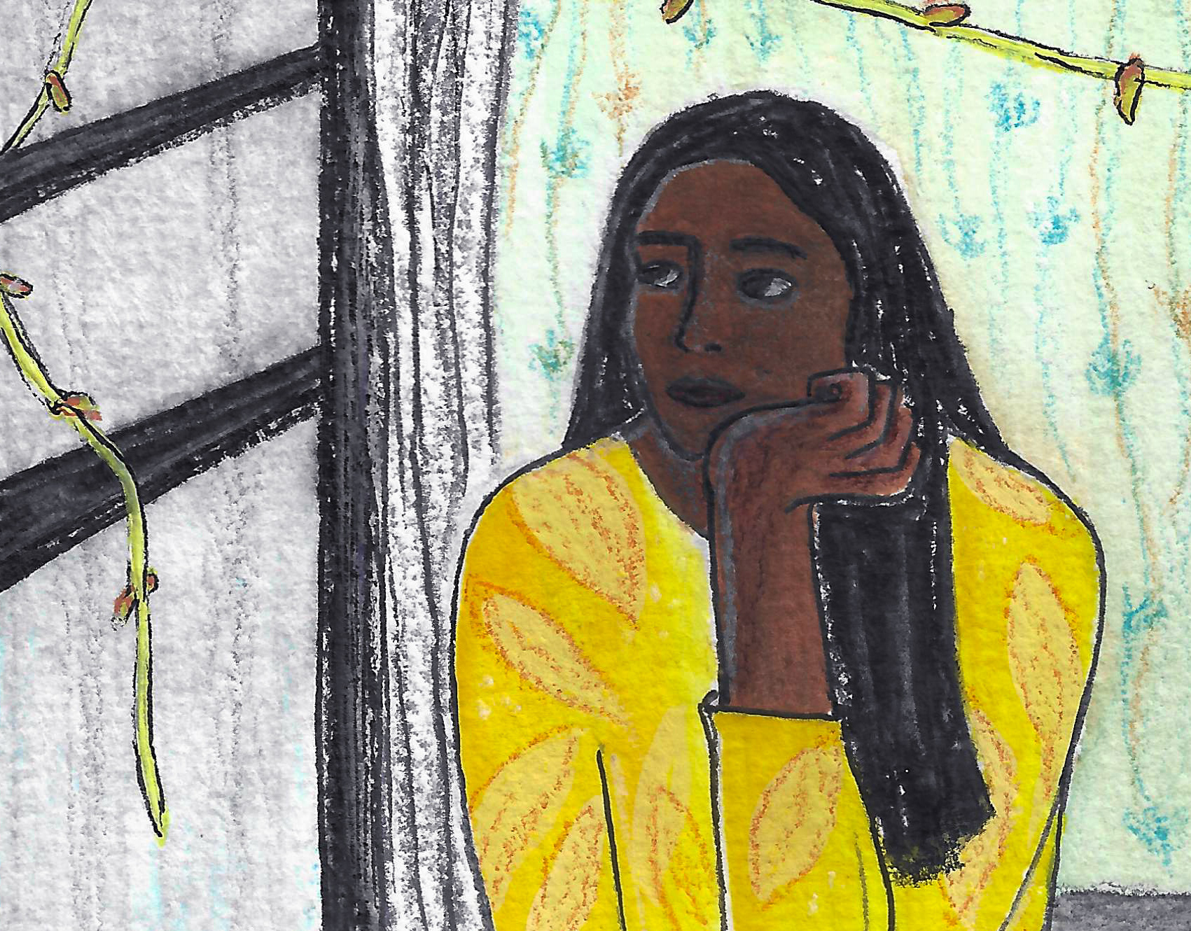 This mural was painted in the dining hall at my parents' home in New Delhi. The dining room would have plenty of natural light which gave me the idea to compliment it with yellow flowers on the wall. My preference of choosing the color yellow also comes from my personal love for it.
